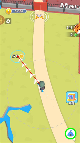 2、在跑酷过程中收集沿途的金币,积累游戏内的资源道具。