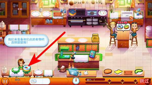 2、选中餐食后,点击顾客所在区域,将所需商品送达至点餐位置。