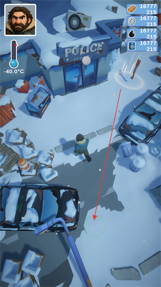 1、进入雪境末日地图后,通过滑动屏幕任意空白区域控制人物角色在地图中进行移动寻找资源。