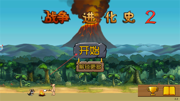 1、这是战争进化史2的初始界面,找到并点击界面中的开始按钮,即可启动游戏进入关卡,此为开启该游戏的核心初始操作步骤。