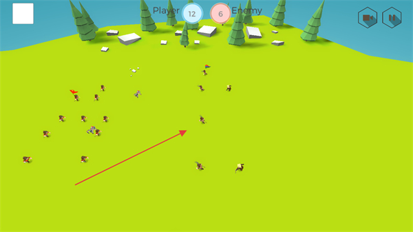 2、操控单位接近敌方单个目标,进行近战攻击,逐步消耗其数量。