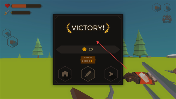 4、消灭所有敌人后,获得VICTORY胜利奖励,可领取金币并选择继续挑战下一关。