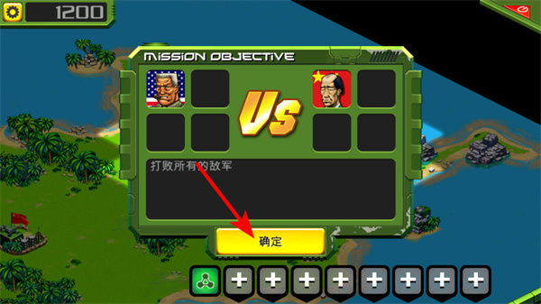 2、在任务目标界面,点击确定按钮,明确打败所有敌军的任务目标,开启军事作战的征程,为后续战斗行动指明方向。