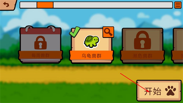 3、在兽群选择页面,选定“乌龟兽群”,点击“开始”按钮进入关卡。