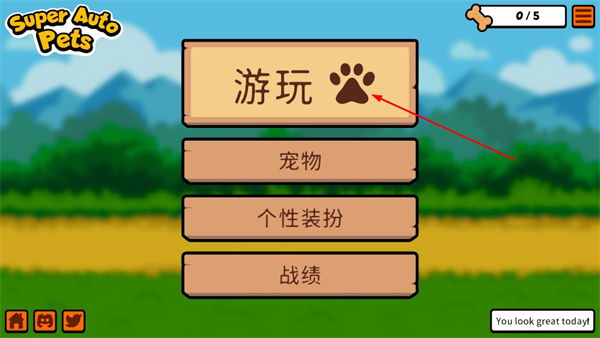 1、进入游戏主界面,点击“游玩”按钮,进入模式选择的场景页面。