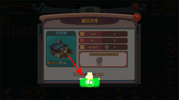 2、查看建筑详情时,点击建造按钮,这是确认建造该建筑的关键步骤,点击后建筑将开始建造流程。