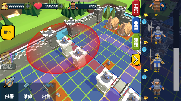 4、在部署场景中,将士兵部署在建筑上,能够强化对应防御区域的作战能力。