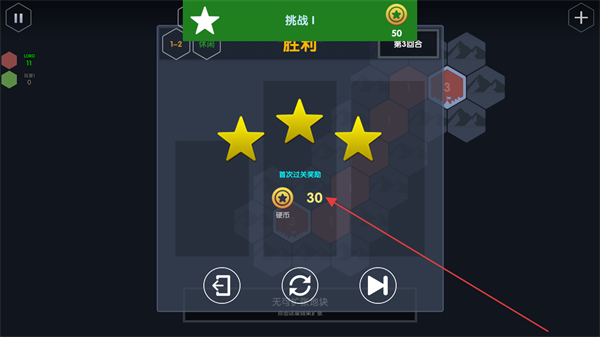 4、首次通过关卡可以 获得硬币奖励,点击右边的箭号按钮进入下一关。