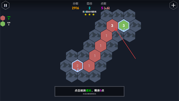 3、点击地块进行数值的增长,直到大于敌方玩家的数值后,点击扩张吞并领地。