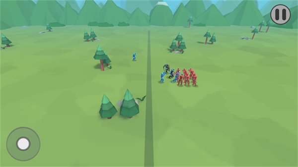 2、操控蓝色士兵向敌方红、黑士兵移动,接近目标触发战斗。