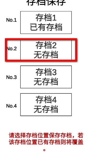 3、选择无存档的存档位置,完成存档保存操作。