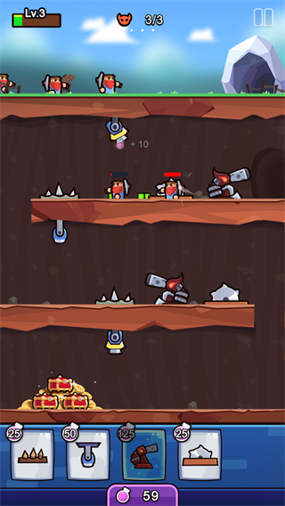 以阻止恶棍盗窃山洞宝藏为核心目标,主题清晰易懂,每一次陷阱布置、每一次恶棍消灭都围绕守护任务展开,让防御过程更具目标感与代入感。