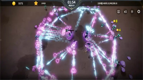 4、当敌方多方向包围时,移动角色位置让攻击范围覆盖更多敌人,同时利用弹幕攻击的范围效果,提升清剿效率并避免被围。