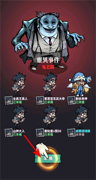 1、进入游戏后在角色选择界面点击准备按钮,即可完成参战角色的确认,进入关卡战斗流程。
