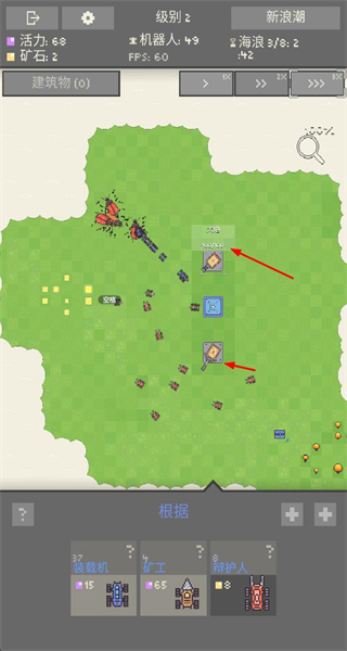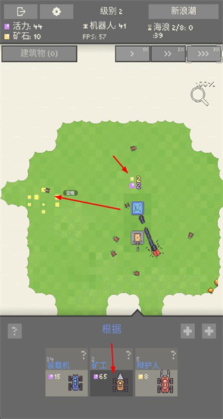 1、在地图场景部署收集单位,前往资源点收集矿石,积累基地建设物资。