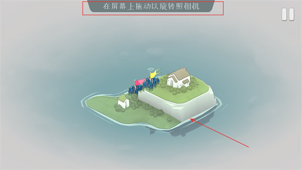 3、在游戏场景内拖动屏幕,能够旋转相机视角,便于查看岛屿不同区域的地形,为后续防御部署做准备。