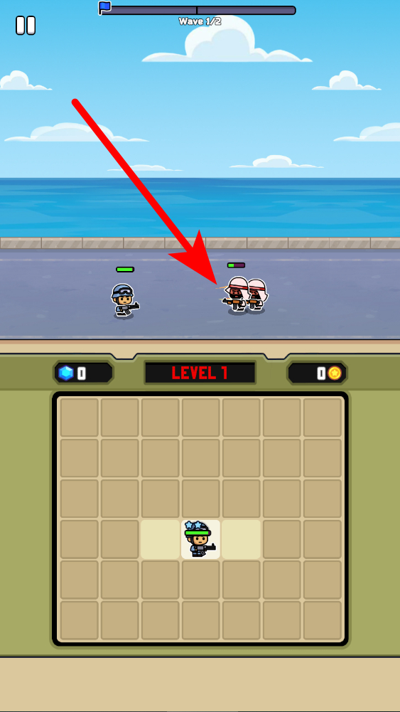 1、合成士兵增强战力,在游戏中,收集相关元素,进行士兵滑动合成操作,合成后的士兵战力得到增强,为对战提供有力支持。