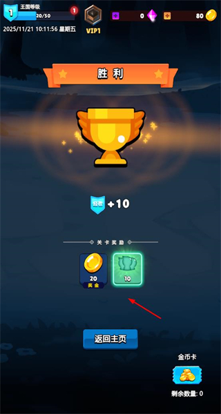 3、关卡胜利后领取金币、道具等奖励,积累资源助力游戏发展。