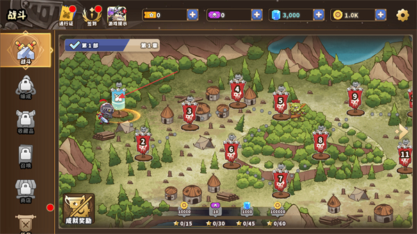 1、在战斗界面的第1章地图中,点击带有数字标识的旗帜据点,即可进入对应关卡开启战斗。
