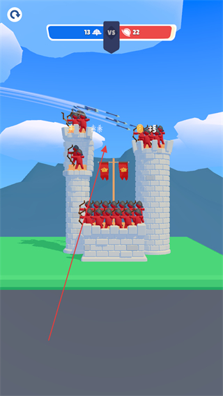 1、操控蓝色方弓箭兵,攻击敌方红色堡垒,削减敌方兵力,推进战场优势。