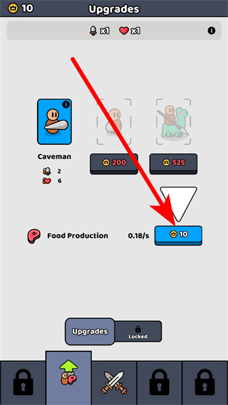 2、在升级界面,还可花费金币解锁新的原始人士兵,不同士兵有不同属性与战力,根据对战需求选择解锁,丰富自身的战斗阵容。