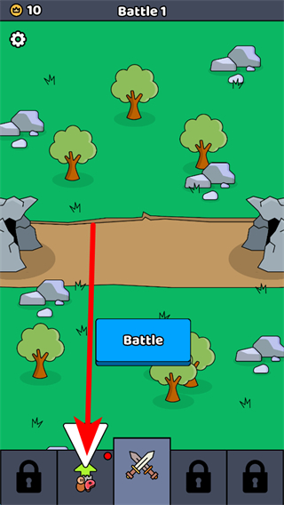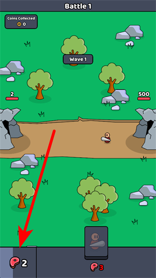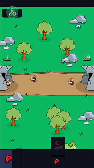 1、点击乙方洞穴派出原始人,原始人会前往战场与敌方单位交战,需合理控制派出节奏,确保战场兵力优势。