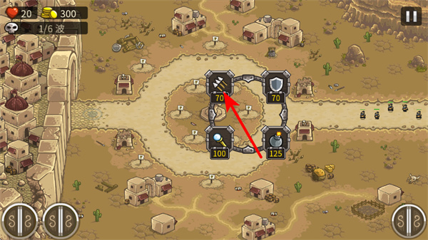 3、在建造界面选择如70金币的防御塔,可消耗金币建造,这是抵御敌人进攻关键操作,建造时优先选择攻击范围广。
