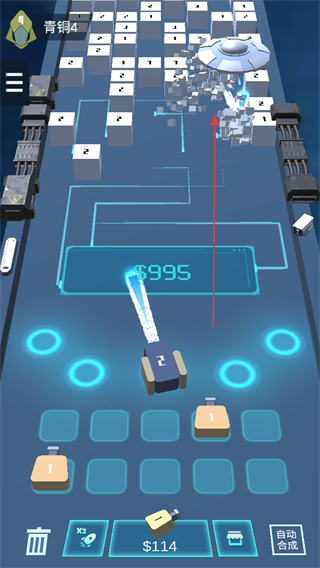 打破传统塔防与打砖块的单一模式,将俄罗斯方块的合并堆叠与塔防的策略布防相结合,通过堆叠强化装甲战力,以打击砖块为目标,玩法新颖独特。