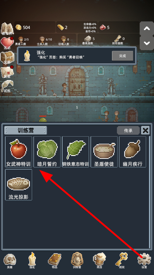 4、最后进入训练营,可以选择如暗月誓约等特训内容,借助特训进一步强化队伍,提升整体战斗力,更好地应对后续的挑战。