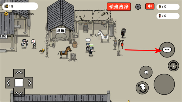 1、进入基地场景后,点击右侧对话按钮,这是触发NPC任务的关键操作,准确点击可接取营救马匹等特色任务,推动剧情。