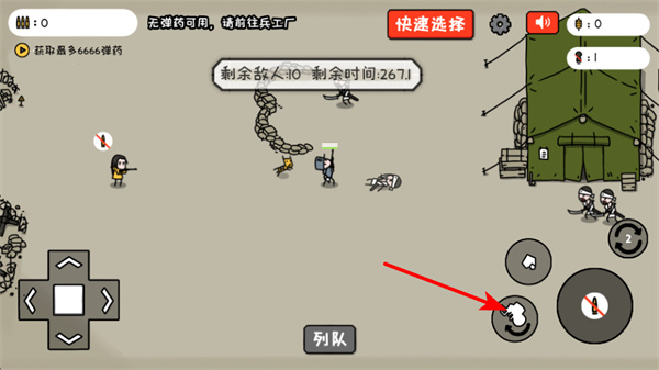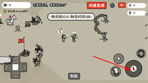 4、战斗中弹药不足时,点击换弹按钮补充弹药,保持持续输出能力;同时利用列队功能调整士兵阵型,优化战斗布局。