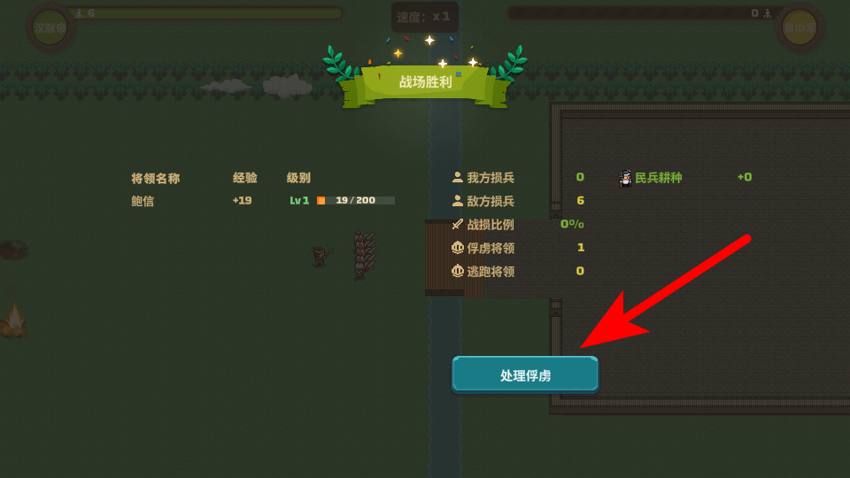 3、战斗胜利后,点击处理俘虏进入俘虏管理界面,这是战后资源整合的关键步骤,通过处理俘虏可获取将领、资源等收益,为后续的领地扩张与势力发展积累资本。