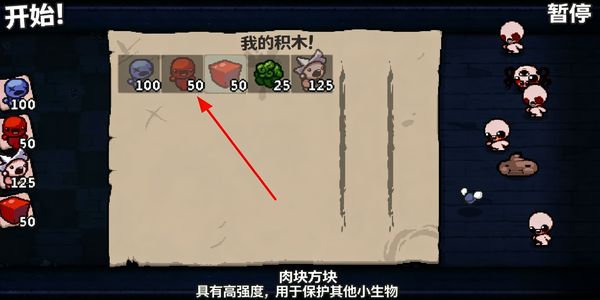 1、开局我的积木界面选择不同卡牌,比如肉块方块可保护小生物,依据需求挑选卡牌开启游戏。