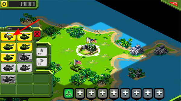 3、点击基地区域,可查看并选择制造不同类型的坦克单位,通过制造坦克增强部队的作战能力,丰富战术选择。