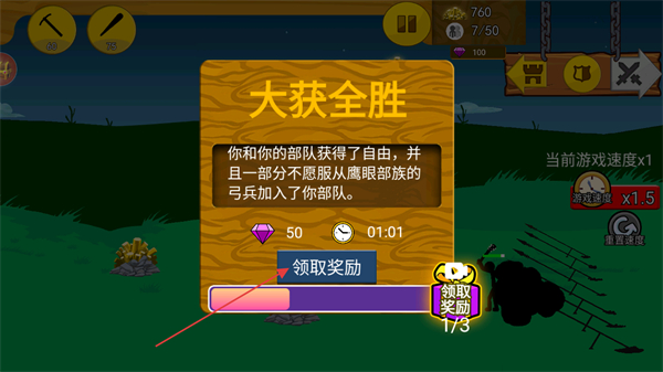 3、成功推翻敌方的雕像占领敌方领地后即为胜利,可以领取钻石作为奖励。