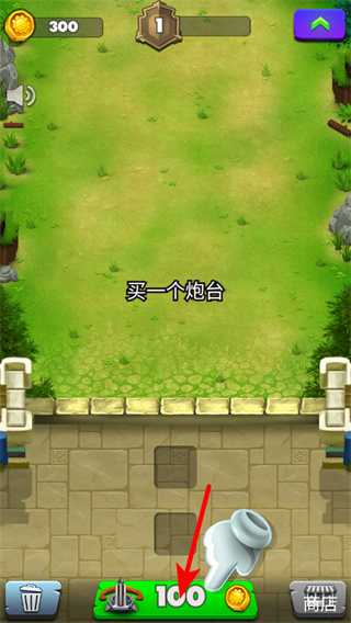2、游戏中依照提示,点击下方标有100金币的炮台选项,消耗对应金币购买一个炮。