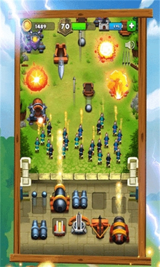 核心操作仅需手指拖动合成与摆放,无复杂指令与花里胡哨的操作,上手门槛极低,合理布阵后可解放双手,让炮台自动战斗,适配碎片化的时间休闲游玩。