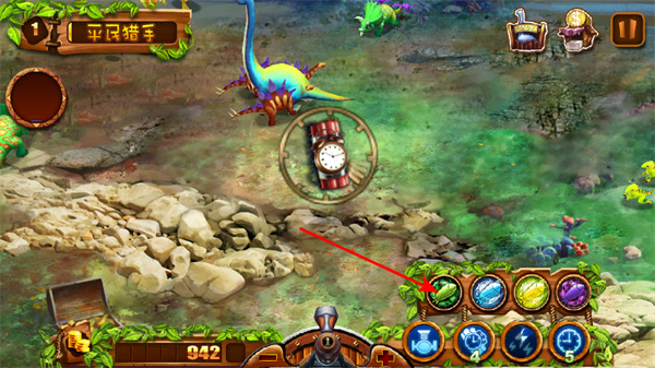 4、利用时间装置,靠近场景中的时间装置,借功能影响战场局势,减缓恐龙行动速度。