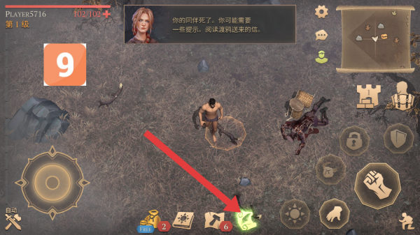 1、同伴死亡后,点击箭头指向的提示相关区域,查看渡鸦送来的信件,获取游戏提示,了解后续行动方向,更好地应对当前处境。