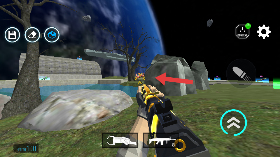1、进入场景后,观察场景中的枪械补给点,靠近后可切换或补充枪械,建议前期选择射速快的枪械应对可能出现的敌人。
