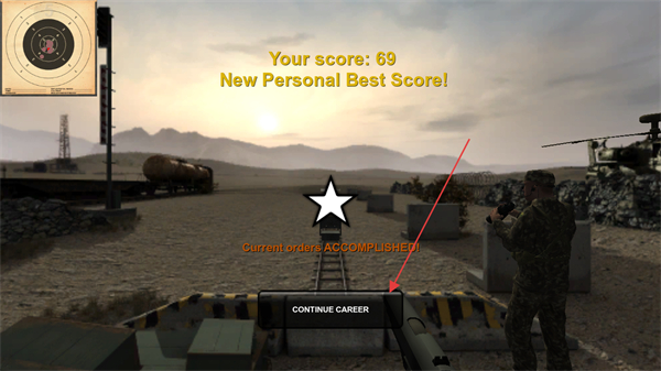 4、完成射击后,点击CONTINUECAREER进入下一轮训练或关卡。
