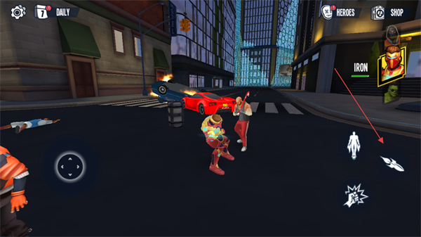 1、界面左侧设有方向控制键,通过其可操控角色在城市场景中移动、调整位置,适配穿梭或战斗中的位移需求。