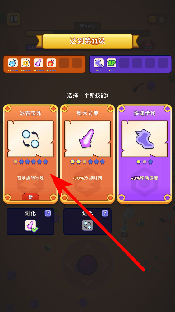 3、接着升级技能,当角色达到一定等级后,会出现技能选择界面,有不同的技能可供挑选,选择心仪的技能进行升级,提升角色的能力,让战斗更轻松。
