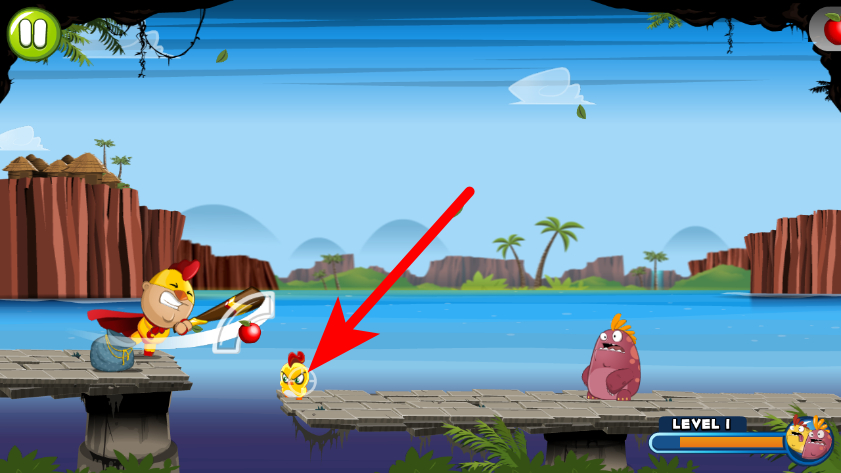 4、出现小鸡被偷提示后,点击偷鸡的怪物,继续推进关卡完成挑战。