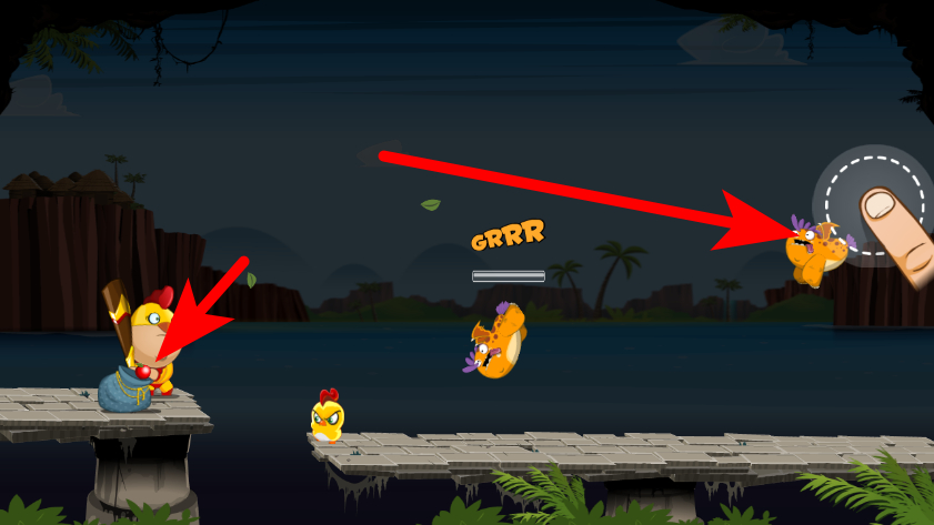 3、在战斗过程中,点击小鸡位置,借助道具攻击前方的目标怪物。