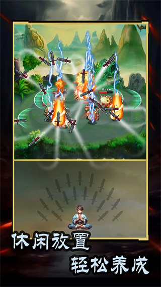 以炼剑为核心成长路径,从单把剑培养到多剑均衡发展,通过升级、锻造提升兵器威力,等级越高的神剑伤害越强,助力快速推图,同时支持挂机时同步培养次级剑。