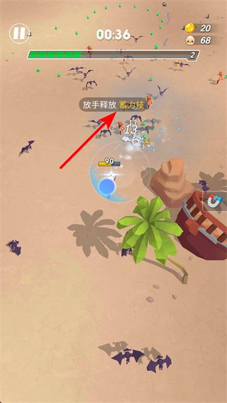 1、在游戏中,释放蓄力技攻击敌人,技能释放是清剿敌人的关键操作,蓄力后释放可对大范围敌人造成伤害,快速掌控战场局势。