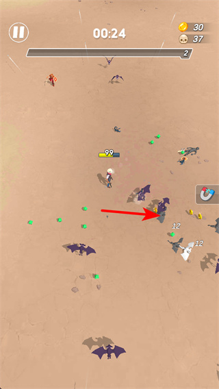 2、操控英雄躲避敌人攻击,躲避操作是保障生存的核心步骤,通过灵活走位可避开敌人的伤害,维持英雄的生命值,持续战斗。