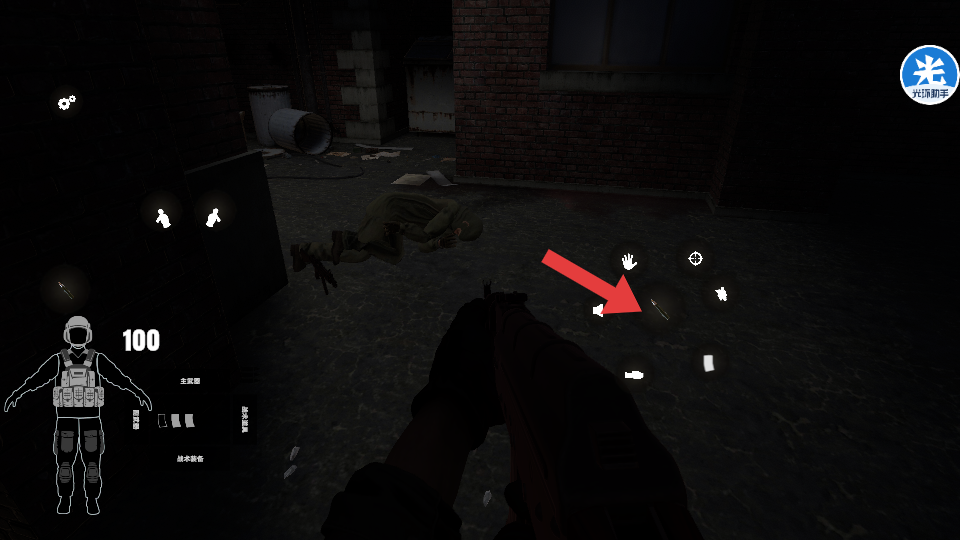 4、点击按键击杀前方出现的敌人,击杀完毕倒地,迅速靠近拾取物资,一方面补充消耗的资源,另一方面清理战场。