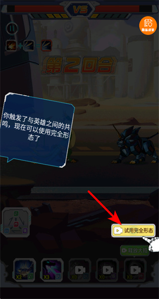 3、触发英雄共鸣后,点击试用完全形态可让英雄变身,变身后英雄战力大幅提升,助力快速击败敌人。
